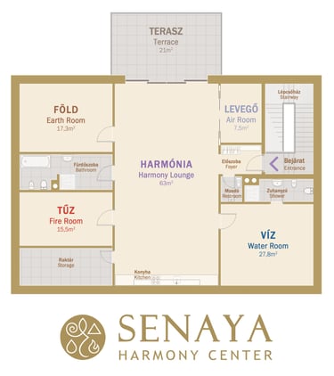 A Senaya Harmony Center különleges terei a négy őselem energiáját hordozzák, hogy minden folyamatod – legyen az csendes belső munka vagy közösségi élmény – méltó, megtartó térben szülessen meg.